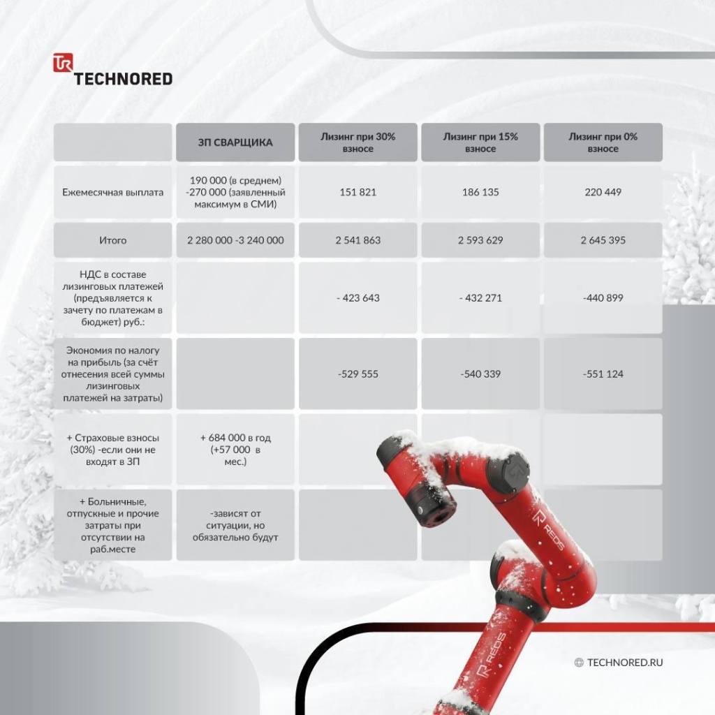 А теперь сравним с покупкой сварочного робота, например, в лизинг.